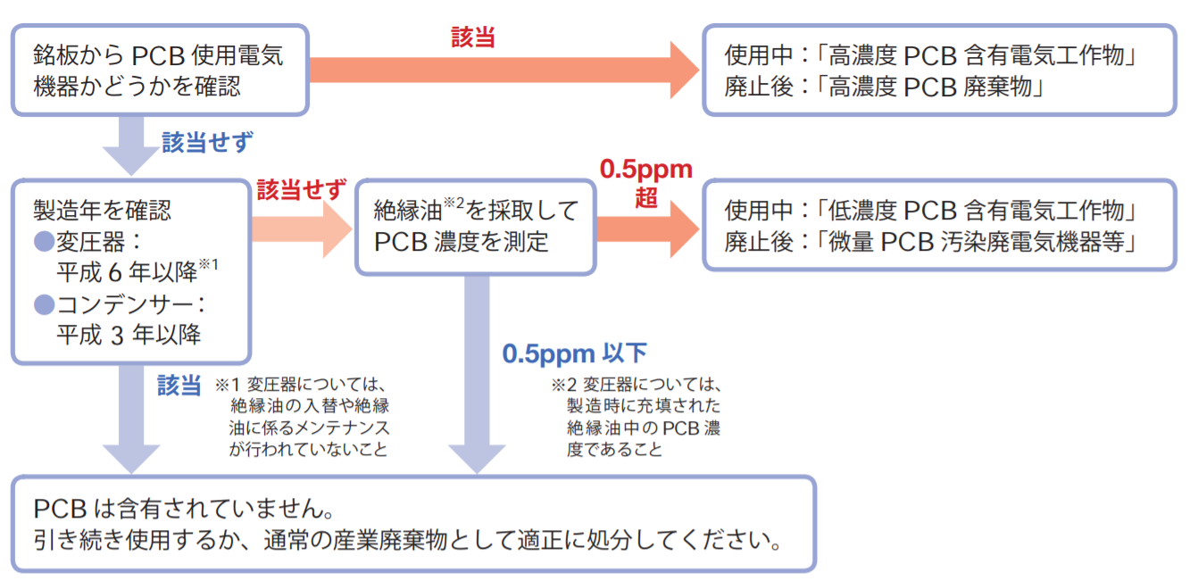 変圧器・コンデンサーの場合のPCB含有製品かの判別方法