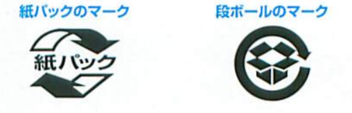 「紙マーク」と呼ばれます。「アルミ不使用の飲料・酒類用紙パック」と「段ボール製容器包装」に識別表示義務はないものの、関係業界団体が自主的にマークを表示しています。